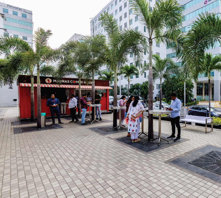 DLF Cyber City Chennai spans 43 acres, featuring approximately 8.4 million sq. ft. of operational office space, redefining excellence in work environments. This ecosystem sets benchmarks in safety, security, sustainable design, customer experience, and technology, making it the ideal choice for those seeking office space for rent in Chennai.