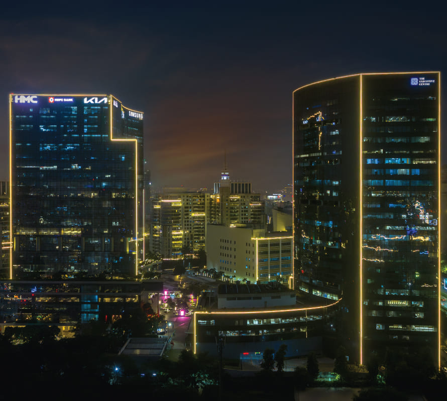 Spanning 0.9 million sq. ft. across 25 stories, One Horizon Center provides unmatched views of the Arnold Palmer-designed DLF Golf & Country Club. Situated on one of the last remaining commercial tracts on Golf Course Road, this office space for rent in Gurgaon is surrounded by Fortune 500 headquarters, high-end residences, upscale shopping malls, fine dining restaurants, and luxury hotels, everything a business could desire.